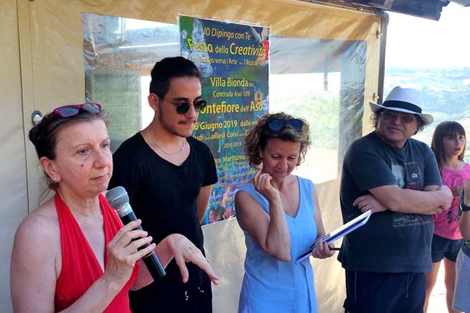 CUPRA MARITTIMA – Una festa dell’arte con tanto di ludi ha concluso gli eventi del “Bambino Creativo Speciale 2019 – Omaggio allo scultore cuprense M° Nazzareno Tomassetti”, a Villa Bionda di Montefiore dell’Aso. Un evento, quello di domenica 16 giugno, riservato ai bambini dei corsi creativi di pittura dell’Arca dei Folli diretti dal M° Annunzia Fumagalli e dell’artista Catia Porrà, mentre all’accoglienza nella struttura ha pensato la collaboratrice dell’Arca Verusca Stampatori. Intrattenitori della serata il poeta Danilo Tomassetti, il M° Antonella Spinelli, il giovane artista Giacomo Malavolta, gli attori Francesco e Paolo R. Maria Aceti, i quali come veri agenti provocatori hanno posto domande divertenti e surreali a bambini e parenti, ricercando risposte altrettanto sorprendenti ed inventive in piena libertà. Quella stessa libertà che  i partecipanti ai Ludi hanno espresso nello scegliere o organizzare giochi sportivi, teatrali e d’ingegno dai più semplici  ai più complessi come gli scacchi.