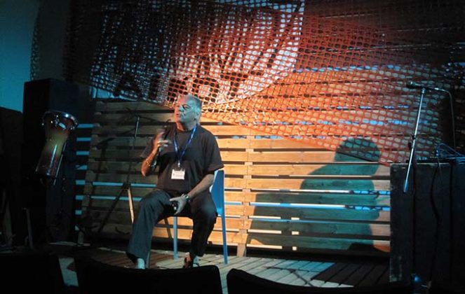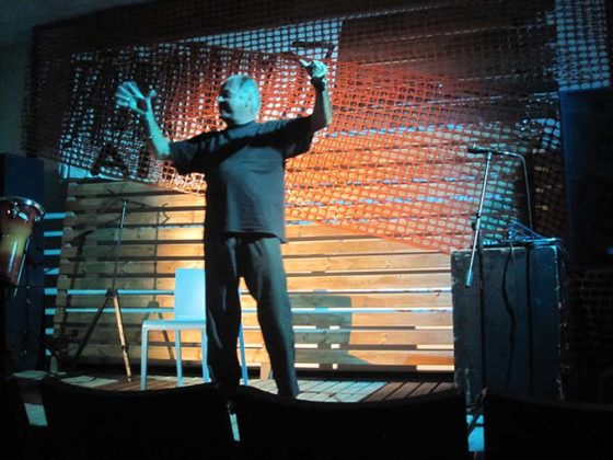 GROTTAMMARE – “I due maestri sono venuti a trovarmi ieri sera, durante l’allestimento”, racconta Vincenzo Di Bonaventura. Dario Fo e Carmelo Bene, naturalmente, chi altri… E nessuno fra noi dubita della realtà di una tal visita: perché li sentiamo ancora qui, i due maestri, nell’omaggio dell’attore solista, “fabulatore d’incanto”, a quel loro teatro che fu soprattutto ricerca – sulla lingua nell’uno, sulla phonè nell’altro – e sempre “teatro del testimone” così come lo è quello di Di Bonaventura: ancor più in questa traiettoria teatrale quasi temeraria, certo visionaria, di giullare scomodo e solitario, a cavallo dei due mesi estivi più connotati – in questa città e non solo – dal confuso frastuono di riti collettivi, commerciali e finto-culturali.