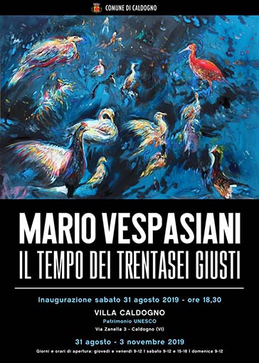 CALDOGNO – L’Amministrazione comunale di Caldogno ha il piacere di invitare alla mostra di Mario Vespasiani, uno dei più autorevoli talenti dell’arte italiana, dal titolo “Il tempo dei trentasei giusti”, un progetto site-specific realizzato appositamente per Villa Caldogno, tra le più celebri ville venete, opera dell’architetto Andrea Palladio, già patrimonio Unesco. La personale, che si apre sabato 31 agosto alle ore 18.30, si svolgerà nelle sale del piano nobile, nelle quali le inedite opere di Vespasiani si pongono in dialogo con gli affreschi cinque-seicenteschi presenti nelle tre stanze scelte, che illustrano gli svaghi e i divertimenti quotidiani della vita dell’epoca, tra giocatori di carte e suonatori.