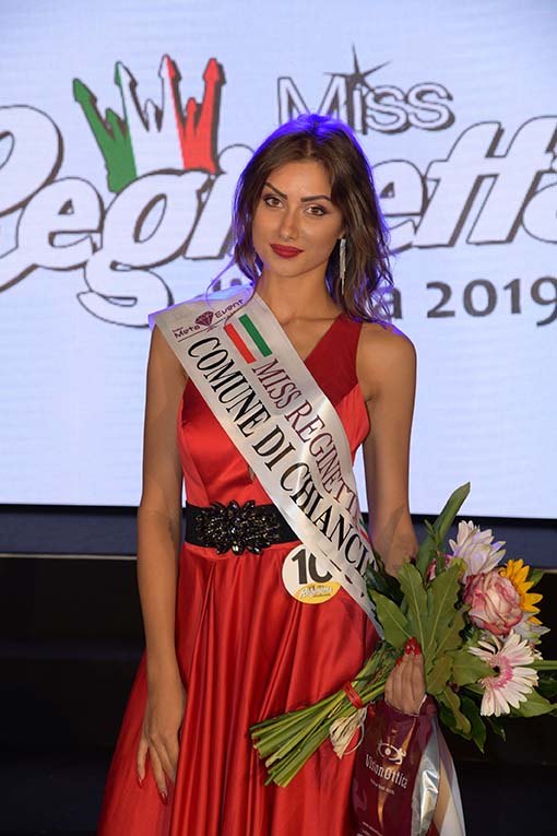 Emozionata Nicole Barbagallo è stata incoronata da Alessia Antonetti, Miss Reginetta 2018. Seconda classificata Madalina Buga 19 anni di Roma, terza classificata Sara Gambini 17 anni di Fermo che si è aggiudicata anche la borsa di studio dell’Accademia d’Arte Drammatica Menandro, quarta classificata Consuelo Pace 17 anni di Marsala, chiude la classifica delle cinque più belle del reame Elisa Giufrida 16 anni di Livorno. Altre tredici fasce sono state consegnate dagli importanti sponsor partner del concorso che hanno scelto direttamente tra le Miss in gara le loro testimonial, tra le Miss fasciate Sophia Marinelli di Ascoli Piceno.