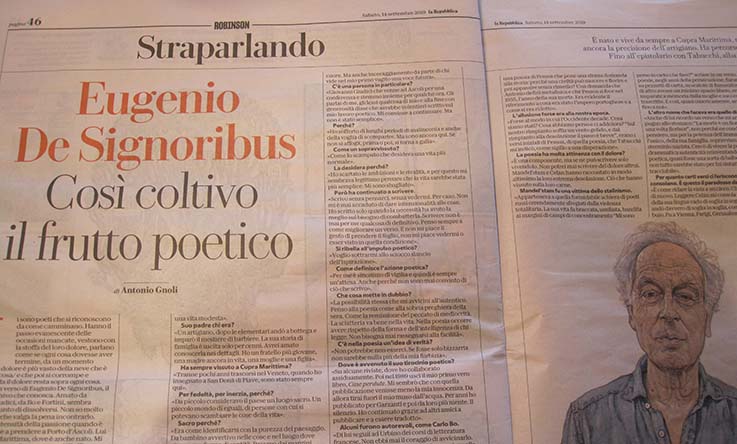 La Repubblica/Robinson n°145 (14.9.2019): «Eugenio De Signoribus, così coltivo il frutto poetico» –