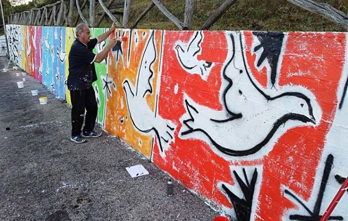 GROTTAMMARE – Terminato il restylig del dipinto della pace, realizzato nel 2007 da Carlo Gentili che lo ha dedicato alla memoria di Etty Hillesum, Alexander Solgenicyn e delle vittime di tutte le dittature di qualsiasi colore politico. La prima parte, quella da sinistra verso destra, che rappresenta le fasi del “Dramma” e del “Dolore umano”, è stata ripristinata come in origine in bianco e nero, con la presenza di fili spinati e di uomini sofferenti stilizzati in posizione allungata come una sorta di spartito musicale, effettivamente messo in musica dal maestro Lombardi e diretto in prima mondiale dal Maestro Massimo Rodilossi. I due successivi momenti pittorici dedicati alla “Speranza” e al “Coraggio di un sogno” sono stati resi con colori maggiormente vivaci, accesi e brillanti; l’inserimento di colombe della Pace immerse nel colore rende il significato ancora più riconoscibile, eloquente, incisivo. Il tema scelto dall’artista Carlo Gentili è stato elogiato da rappresentanti istituzionali come l’ambasciatore Unicef Carlo d’Inghilterra, la regina Margareth II, Massimo D’Alema, Fausto Bertinotti, Massimo Rossi, il critico d’arte Vittorio Sgarbi, Mons.Gervasio Gestori. Il restauro, sapientemente effettuato da Gentili, ha contribuito a migliorare coloristicamente l’impatto del dipinto rendendolo ancora più piacevole alla vista attraverso segni e colori decisamente più sgargianti.
