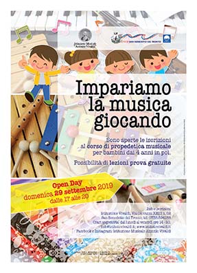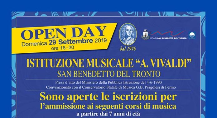 SAN BENEDETTO DEL TRONTO – Porte aperte all’Istituto Vivaldi, domenica 29 settembre dalle ore 16 alle ore 20. Ad accogliere i visitatori saranno presenti il direttore e i docenti dell’Istituzione che resteranno a disposizione per illustrare nel dettaglio tutte le attività didattiche che in essa si svolgono. Anche quest’anno l’offerta prevede il Corso di “Propedeutica Musicale” per bambini da 4 a 7 anni, curato con competenza da docenti qualificati e diplomati, oltre che in strumento musicale, anche in “Didattica della Musica” presso il Conservatorio Statale: l’obiettivo del corso è quello di avvicinare i bambini in modo divertente e istintivo al mondo dei suoni, stimolandone la curiosità e l’immaginazione. Con il citato Corso si conferma l’ampiezza dell’offerta formativa dell’Istituzione Musicale: si parte con “Crescere con la Musica” da 0 a 3 anni, si prosegue