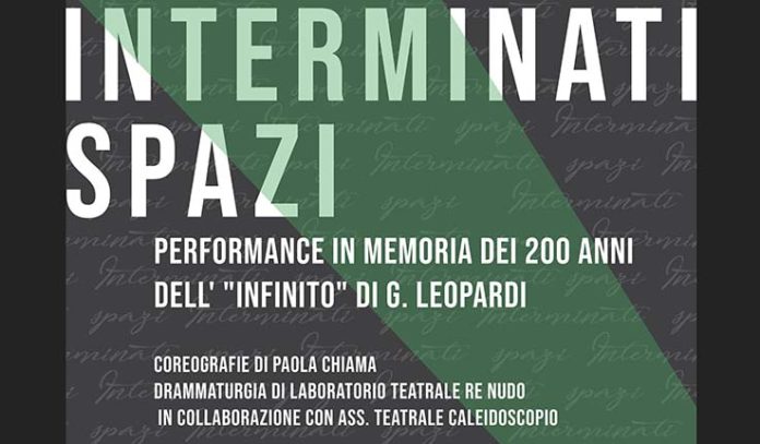 SAN BENEDETTO DEL TRONTO – Inizia il workshop di teatrodanza con Paola Chiama, finalizzato all’allestimento di una performance dal titolo “Interminati spazi”, che andrà in scena sabato 12 ottobre alle ore 21.15 presso il Cineteatro San Filippo Neri di San Benedetto del Tronto, in occasione dei 200 anni dell’Infinito di Giacomo Leopardi e come evento di apertura della stagione teatrale 2019-2020. Il corso, che si terrà dal 6 al 12 ottobre presso il Teatro dell’Olmo di San Benedetto, è rivolto a un massimo di 20/25 partecipanti dai 16 anni in poi e seguirà il seguente orario: domenica dalle 10 alle 13; lunedì-venerdì dalle 19.30 alle 22.30. Il sabato si terranno le prove generali e la performance serale presso il Cineteatro San Filippo Neri. Il costo è di 75 euro a persona.