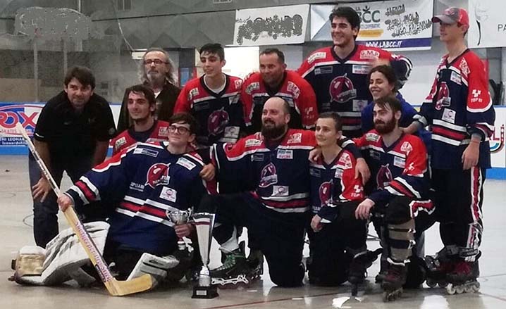 SAN BENEDETTO DEL TRONTO – La squadra di hockey inline dei Pattinatori Sambenedettesi si è laureata campionessa italiana Uisp superando, nella fase finale disputata a Forlì, i campioni uscenti del Cittadella, il Padova, il Vicenza e i molisani del Kemarin di Campomarino. I rossoblù, allenati da Luca Tiburtini, con Teresa Turillo (già commissario tecnico della nazionale italiana femminile), coadiuvata da Fabiola Berardi (che assolve per la Pattinatori Sambenedettesi anche il ruolo di preparatore atletico) si erano qualificati per le finali nazionali, con formula all’italiana, giungendo al primo posto nel proprio raggruppamento, che comprendeva le formazioni del Centro e del Sud Italia.