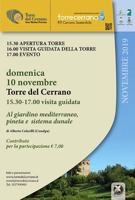 TERAMO – Le “Domeniche a Torre Cerrano alla scoperta dell’ambiente” organizzate dalla Cooperativa Clematis, continuano con l’appuntamento di domenica 10 novembre. Dalle ore 15.30 alle 17 si svolgerà la visita guidata per conoscere il Giardino Mediterraneo, la Duna e la Pineta dell’Area Marina Protetta. Ad accompagnare i partecipanti in questa visita è Alberto Colazilli, curatore di parchi e giardini, esperto in restauro di giardini e paesaggio, presidente del Coordinamento Nazionale Alberi e Paesaggio, che  illustrerà le numerose specie arboree e arbustive della macchia mediterranea che sono conservate nell’area marina protetta. Sarà momento di studio sulla corretta gestione di un giardino botanico, quali sono gli interventi da svolgere per migliorare le preziose specie floristiche, molte delle quali in via di estinzione; come intervenire con mirate azioni di restauro di un paesaggio mediterraneo per la valorizzazione delle specie autoctone e la ricostruzione graduale della vegetazione psammofila e della macchia; quali azioni mettere in campo per migliorare la valorizzazione di vedute marine, attraverso la pineta litoranea. Il paesaggio della Torre del Cerrano, già bellissimo nel suo insieme, conserva annosi esemplari di Fillirea, Lentisco, Corbezzolo che si alternano a Chamaeropshumilis, a Pini d’Aleppo mentre nella duna è possibile rintracciare il rarissimo Giglio di Mare assieme ad altre piante dunali.