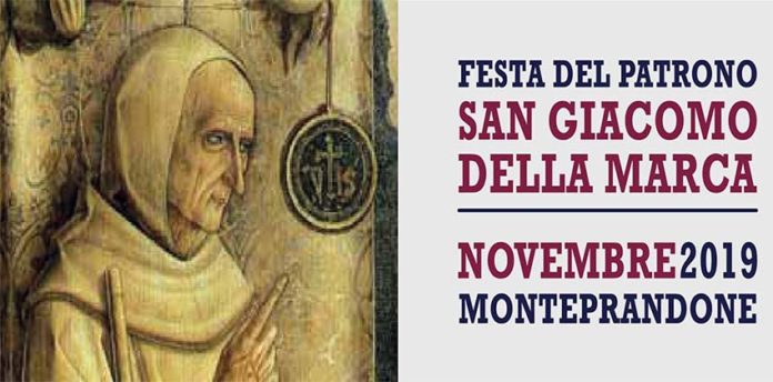 MONTEPRANDONE – Al via i festeggiamenti in onore di San Giacomo della Marca, Patrono di Monteprandone tra arte, storia, tradizione, itinerari, spiritualità e ascolto. Il primo appuntamento dedicato agli alunni dell’Istituto comprensivo di Monteprandone, si terrà venerdì 22 novembre, alle ore 10, al Santuario di San Giacomo. Verranno presentate le tavole illustrate sulla vita del Santo realizzate dall’artista Sabrina Spurio. Sempre venerdì 22 novembre, nella Chiesa Santa Maria delle Grazie, alle ore 21 ci sarà il concerto di Cecilia, un’artista di fama internazionale, con alle spalle collaborazioni con Max Gazzè, con la sua arpa ci farà vivere dei momenti unici. L’evento ad ingresso gratuito è organizzato dall’associazione 17 festival.