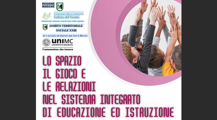CASTEL DI LAMA – Sabato 14 dicembre, dalle ore 9 alle 13 nella Sala Consiliare di Castel di Lama, si terrà il convegno “Lo spazio, il gioco e le relazioni nel sistema integrato di educazione e istruzione”. Un momento formativo importante per la priorità all’istruzione e il sostegno ai minori. L’evento è organizzato dall’Unione dei Comuni della Vallata e dall’Ambito Territoriale Sociale 23 (ATS23) con il patrocinio della Regione Marche e dell’Università di Macerata. Il convegno inizierà alle ore 9, con il saluto delle autorità. Saranno presenti Andrea Cardilli, Presidente Unione dei Comuni Vallata del Tronto; Mauro Bochicchio, Sindaco di Castel di Lama e i Dirigenti Scolastici. A seguire ci sarà la presentazione da parte del Coordinatore ATS23, Luigi Ficcadenti. Alle ore 9.30, l’intervento e un Workshop a cura della dottoressa Rosita Deluigi, Professore associato in Pedagogia Generale e Sociale dell’Università degli Studi di Macerata. Modererà l’incontro e concluderà i lavori, la dottoressa Rita Tancredi, coordinatrice Pedagogista ATS 21 . «Nel 2017 – ricorda Luigi Ficcadenti, coordinatore ATS23 – l’Unione dei Comuni della Vallata avviò la pratica di accreditamento per i servizi educativi per la prima infanzia (0-3 anni) per cui fu incaricata la dottoressa Rita Tancredi, che ringrazio per il grande lavoro svolto quando era coordinatrice Pedagogista nell’ATS23. Negli anni abbiamo ottenuto un’uniformità educativa e l’ottimizzazione dei tempi. Con il convegno andiamo a rafforzare il progetto pedagogico e confermiamo il nostro impegno a implementare l’offerta. Ricordo che l’Ente ha destinato 100 mila euro a sostegno degli asili nido».