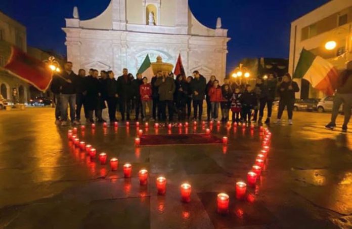 SAN BENEDETTO DEL TRONTO – Nel pomeriggio di domenica 15 dicembre, in Piazza Nardone, si è svolta una manifestazione commemorativa per onorare le vittime del devastante sisma che ha colpito la città albanese di Durazzo il 26 novembre scorso e che ha provocato decine di morti e centinaia di feriti. Il Presidente dell’Associazione Albanesi di San Benedetto del Tronto, Vasil Nushi, con il supporto del Consigliere comunale Stefano Muzi, ha organizzato l’evento, che ha registrato una settantina di partecipanti, oltre alla presenza del sindaco Piunti e dell’assessore Baiocchi. La commemorazione ha previsto la deposizione, da parte di alcuni bambini della scuola albanese, aperta esattamente un anno fa in città, di cinquantadue candele, una per ogni vittima del terremoto, andando a formare un grande cuore, al cui interno vi è stata distesa la bandiera dello stato albanese. «É stata un’iniziativa simbolica ma densa d’importanza – ha dichiarato il consigliere Muzi – necessaria per rafforzare il legame ed esprimere la vicinanza alla comunità albanese in riviera, flagellata, a pochi giorni dalla celebrazione della giornata della loro indipendenza, da una tragedia che il nostro territorio purtroppo conosce bene».