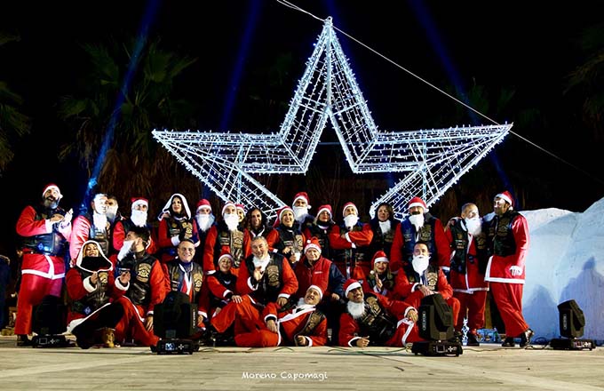 MONTEPRANDONE – Una domenica spettacolare a Monteprandone dove una trentina di centauri in Harley Davidson vestiti da Babbo Natale hanno dato vita ad un carosello molto suggestivo per le vie del paese. L’evento è stato organizzato dai volontari Avis di Monteprandone, in collaborazione con l’Associazione Cento Per Cento, la Pro Loco di Monteprandone e con l’assistenza della Federvol Protezione Civile. I Centauri hanno destato la meraviglia di adulti e bambini, scesi per le strade incuriositi dal ruggito delle moto. «Lo scopo di questi eventi, – dicono i volontari Avis di Monteprandone – è quello di riuscire a promuovere i valori della donazione. E chi meglio di Babbo Natale può interpretare questo ruolo, lui che è il donatore per eccellenza. Un sentito ringraziamento va al Free Chapter V Picenum Harley Group che ha accettato l’invito di sfilare per le strade di Monteprandone con le loro roboanti moto con l’obiettivo di risvegliare gli animi delle persone verso i valori della solidarietà». L’Avis di Monteprandone, con questo evento, suggella un anno di promozione e presenza costante nel territorio. A tutti coloro che desiderano ricevere maggiori informazioni sulla donazione del sangue, il direttivo Avis ha il piacere di accoglierli nella nuova sede in Piazza dell’Unità 10 a Centobuchi, accanto al Giovarti.