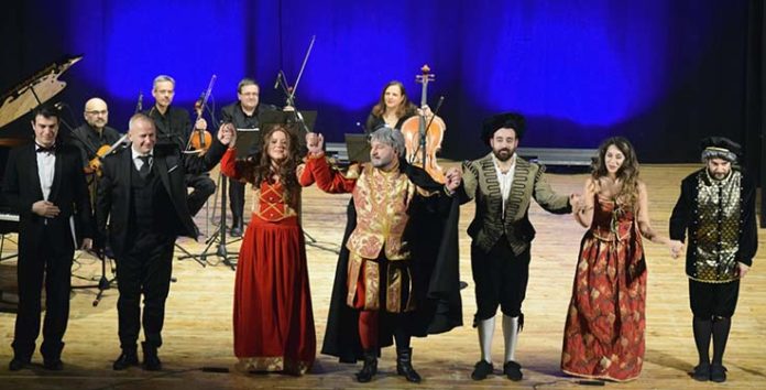 Le bellissime musiche sono state eseguite con grande maestria dal Quartetto d’archi “Antonio Vivaldi” composto da Piergiorgio Troilo e Paolo Incicco violini, Emiliano Finucci viola e Daniela Tremaroli violoncello e direzione artistica, accompagnati al pianoforte dal concertatore e arrangiatore delle parti, Massimiliano Caporale. Narrazione, costumi (originali provenienti dal Teatro dell’Opera di Roma) e regia sono stati del musicologo Paolo Santarelli, il quale ha accompagnato il pubblico nello spettacolo musicale introducendo i vari momenti dell’opera e descrivendo i retroscena storici della vicenda.