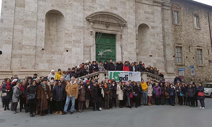 ASCOLI PICENO – Sono state più di 150 le persone di ogni età che hanno partecipato all’iniziativa “I presepi nelle chiese ascolane” che è stata organizzata dall’Unione Sportiva Acli Marche nell’ambito del progetto “Sport senza età”. Davvero interessante il percorso predisposto dalla guida turistica Valentina Carradori che ha permesso ai tanti cittadini presenti, provenienti da Marche ed Abruzzo, di conoscere meglio alcune chiese cittadine che di solito non vengono visitate come, ad esempio, quella della Madonna del Carmine e della Madonna del buon consiglio. La manifestazione, incentrata sulla visita ai presepi presenti all’interno di alcune chiese della città, ha dunque fatto conoscere due autentici gioielli cittadini al cui interno ci sono splendidi capolavori artistici e bellissimi presepi, per poi concludersi davanti al tempietto di Sant’Emidio. “I presepi nelle chiese ascolane” è stato organizzato con il patrocinio dell’Amministrazione comunale, il sostegno dell’Asur Marche, della Fondazione Cassa di Risparmio di Ascoli Piceno e di Susan G. Komen Onlus ed ha visto la presenza del vicepresidente del Consiglio regionale – Assemblea legislativa delle Marche Piero Celani e del neo presidente regionale dell’Unione Sportiva Acli Marche Giulio Lucidi. Per ulteriori informazioni sulle prossime iniziative del progetto “Sport senza età” si possono