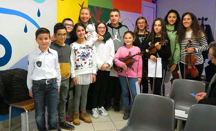 MACERATA – Nata da un’idea del dottor Massimo Giannini, primario del reparto di radioterapia dell’Ospedale Civile di Macerata e coordinata da Adamo Angeletti, direttore della Scuola civica di musica Stefano Scodanibbio, si è svolta la terza edizione di “Musicisti natalizi” che ha visto impegnati docenti e allievi della scuola di musica cittadina. La sala d’aspetto del reparto di radioterapia, un pianoforte e il potere magico della musica hanno contribuito durante le festività natalizie ad allietare i momenti di attesa dei pazienti e a creare un clima accogliente e cordiale nella struttura sanitaria. Le performance degli insegnanti Silvia Santarelli, Adamo Angeletti, Mirthe Goldman e Maria Grazia Caproli al pianoforte, di Matteo Torresetti, Margherita Martellini al violino e di Claudia Antonelli (pianoforte e coro) sono state apprezzate dai pazienti, dal personale e dal primario del reparto che ha già dato appuntamento a tutti per la nuova edizione del 2020.