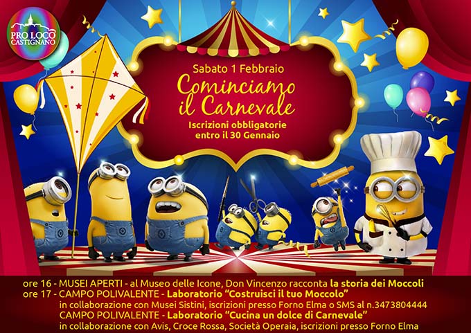 CASTIGNANO – Si contano ormai le ore, gli ultimi preparativi sono in corso, l’apertura del Carnevale Storico di Castignano è alle porte. Sabato 1 febbraio l’appuntamento iniziale è fissato alle ore 16 presso il Museo delle Icone dove don Vincenzo illustrerà la storia dei Moccoli, vera e propria opera d’arte e simbolo più antico del Carnevale di Castignano. Ci si sposterà quindi presso il “campo polivalente”, in Via delle Mura 30, in cui l’evento proseguirà ininterrottamente fino a notte. Alle ore 17 apriranno gli stand per la “Mostra mercato dei dolci tipici carnascialeschi”, giunta alla sua terza edizione. Sarà quindi possibile ammirare, comprare, degustare le prelibatezze tipiche di questo periodo: frappe, cicerchiate, castagnole, ravioli con vari ripieni, e molto altro ancora.