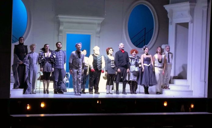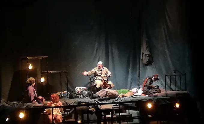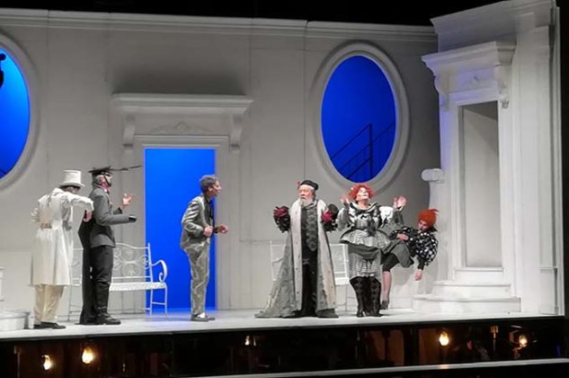 A dare sostanza e qualità a questo spettacolo, però, hanno giocato due fattori. Per primo, l’adattabilità e il grande senso della recitazione degli attori e una felice scenografia che, come nelle commedie di Ionesco o Beckett, tengono in scacco le figure sceniche. Che sia l’antro buio e umidiccio dello scantinato dove vivono Felice (professore in pensione caduto in disgrazia) e la sua ossessiva compagna (un’ottima Maria Bolignano che ci è parsa perfetta nel ruolo di Luisella), assieme alla famiglia del suo amico Pasquale, un attore squattrinato (Andrea de Goyzeuta che ha personalità e spessore scenico da vendere) o la dimora elegante del signorino Eugenio, invaghito della figlia del cuoco in forza presso il ricco Marchese Gaetano Semmolone, i personaggi sono sempre bloccati nelle loro caricature e stereotipi.