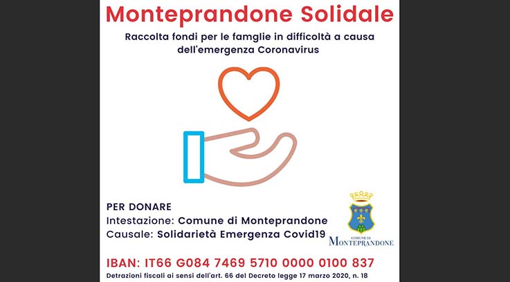Home Località Emergenza Covid-19, il Comune di Monteprandone apre il conto corrente per le...