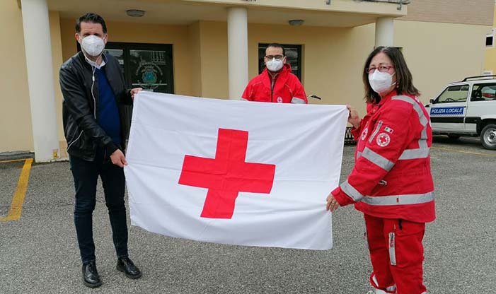 MONTEPRANDONE – Questa mattina, lunedì 11 maggio, il sindaco di Monteprandone Sergio Loggi ha ricevuto dalla referente della sezione di Monteprandone della Croce Rossa Virginia Pallottini e dal volontario Kotry El Mehdi, una bandiera della Croce Rossa in occasione della Giornata mondiale dell’associazione che si è festeggiata l’8 maggio. «Rivolgiamo a ciascun volontario della Croce rossa locale e nazionale il nostro ringraziamento – ha dichiarato il sindaco Loggi – e sostegno per il grande lavoro che svolgono quotidianamente per tutti noi cittadini, in particolare in questo periodo in cui l’emergenza sanitaria li porta ad essere sempre più esposti nel fronteggiare la lotta alla pandemia». Come in altri municipi italiani, la bandiera è stata esposta sulla facciata della Delegazione Comunale di Centobuchi con l’obiettivo di sensibilizzare e avvicinare la cittadinanza alla Croce Rossa.