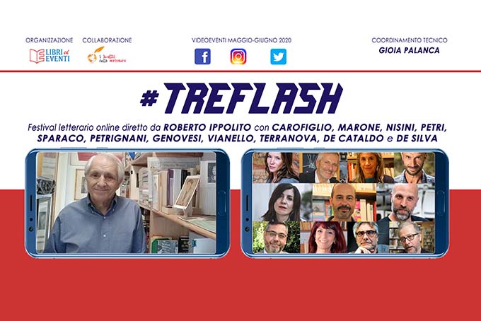 SAN BENEDETTO DEL TRONTO –  Poche parole essenziali per incuriosire. È l’idea alla base di #TreFlash, il festival letterario online diretto da Roberto Ippolito. Il numero tre indica le domande poste agli scrittori per tirar fuori il succo dai loro libri con risposte della durata massima di un minuto. L’organizzazione è della libreria Libri ed Eventi di San Benedetto del Tronto con la collaborazione dell’associazione I Luoghi della Scrittura e il coordinamento tecnico di Gioia Palanca. I videoeventi vengono diffusi sui social (Facebook, Twitter e Instagram) da martedì 19 maggio 2020 e fino al successivo giugno. I partecipanti sono Gianrico Carofiglio, Lorenzo Marone, Giorgio Nisini, Romana Petri, Simona Sparaco, Sandra Petrignani, Fabio Genovesi, Andrea Vianello, Nadia Terranova, Giancarlo De Cataldo e Diego De Silva proposti in questo ordine.