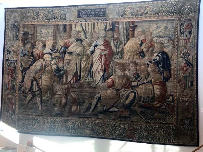 LORETO – «Raffaello riparte da Loreto con una mostra inusuale sull’arazzo cinquecentesco inedito, che diventa così un simbolo del ritorno alla normalità anche per la nostra regione».  Queste le parole dell’assessore regionale al Turismo-Cultura, Moreno Pieroni all’inaugurazione al Bastione Sangallo dell’esposizione dal titolo “Ananias et Saphira. Raphael Invenit”, curata da Stefano Papetti. «Le Marche – prosegue l’assessore – continuano a considerare il turismo culturale un segmento principe della nostra attrattività e quest’anno doveva esserlo ancor più con le celebrazioni del cinquecentenario del grande genio urbinate che tutto il mondo onora.  Per questo la Regione Marche ha sostenuto e investito su questa mostra a Loreto che vuole essere un ulteriore, qualificato tassello al mosaico degli eventi raffalleschi che si terranno in Autunno». La mostra sarà aperta al pubblico da lunedì 25 maggio anche attraverso il servizio di prenotazione (per informazioni segreteria.loreto@regione.marche.it e rimarrà visitabile fino 31 agosto al Bastione Sangallo. Nel rispetto di quanto previsto dalla normativa in misure di contenimento per la prevenzione dal contagio da Covid-19, l’accesso sarà contingentato. L’esposizione comprende anche una serie di interessanti incisioni ispirate alle opere dell’artista e opere scultoree dell’Accademia delle Belle Arti di Urbino.