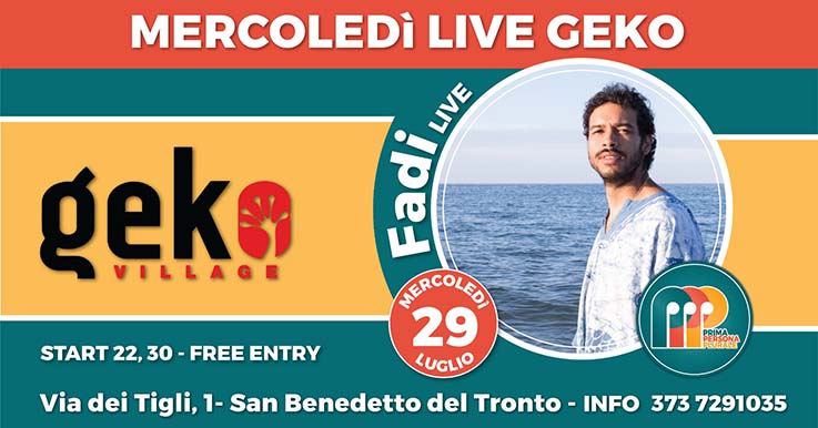 Mercoledì Live Geko, Fadi in concerto il 29 luglio a San Benedetto
