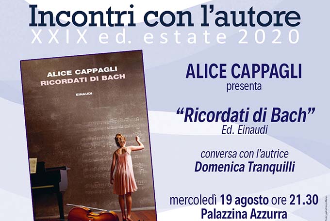 SAN BENEDETTO DEL TRONTO – Per il ciclo “XXXIX Edizione – Incontri con l’Autore”, Alice Cappagli presenterà il libro “Ricordati di Bach”, mercoledi 19 agosto alle ore 21,30 alla Palazzina Azzurra. L’evento è organizzato dall’Associazione “I luoghi della scrittura” e dalla Libreria “Libri ed Eventi” con il patrocinio ed il sostegno dell’Amministrazione comunale e della Regione Marche. A conversare con la scrittrice sarà Domenica Tranquilli.  Prenotazione al 3357000773  oppure whatsapp 3664349288.  Alice Cappagli è livornese e ha suonato il violoncello nell’orchestra del Teatro alla Scala per 37 anni. Ha pubblicato per Statale 11 un racconto a tema musicale dal titolo “Una grande esecuzione” (2010). Per Einaudi ha pubblicato “Niente caffè per Spinoza” (2019 e 2020) e “Ricordati di Bach” (2020).