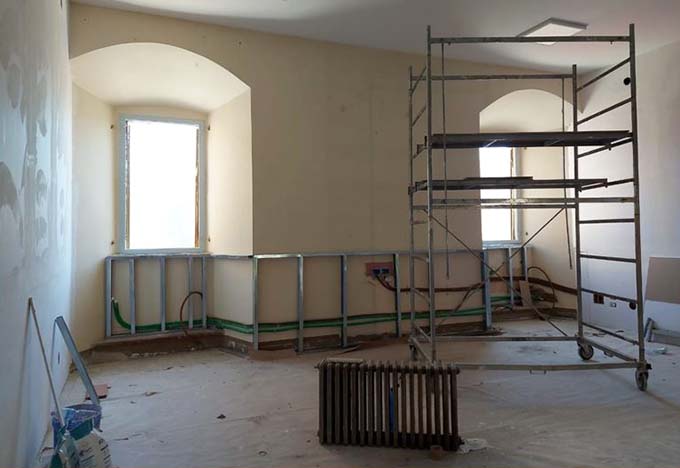 OFFIDA – L’Amministrazione comunale di Offida, dopo le prime linee guida del Governo per la ripartenza scolastica, ha iniziato a lavorare in sinergia con la dirigenza scolastica e il responsabile della sicurezza dell’IC Falcone Borsellino per programmare i lavori necessari a garantire l’inizio dell’anno scolastico 2020 / 2021 nel rispetto delle linee guida emanate. L’obiettivo era quello di garantire il rientro in aula dei ragazzi senza doppi turni che avrebbero causato disagi ai ragazzi e alle famiglie. Per questo motivo, sono stati eseguiti lavori di abbattimento di alcune pareti per avere aule più ampie, inoltre sono stati recuperati e adeguati locali, con posa in opera di pareti in cartongesso fonoisolate. I lavori, che a breve saranno completati, consentiranno l’avvio dell’attività didattica a tutte le classi.