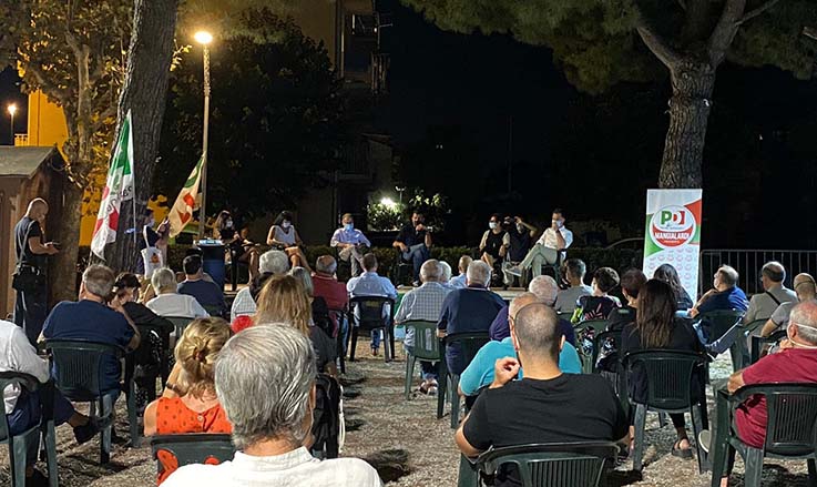 CUPRA MARITTIMA – Sabato 22 agosto dalle ore 20.30 a Cupra Marittima più di 100 persone intervenute hanno avuto l’opportunità di ascoltare e conoscere il candidato del Pd alla Presidenza della Regione Marche Maurizio Mangialardi ed i 4 candidati sempre del Pd per il Piceno: Paolo D’Erasmo, Anna Casini, Augusto Curti e Valeria Cardarelli. L’incontro, grazie all’impegno del rinnovato Pd locale, si è svolto nella pineta “Martiri delle Foibe”, diventata per questa strana estate segnata dall’emergenza Covid la sede dei dibattiti politici. «Durante l’incontro, moderato e composto, – fanno sapere dal Pd – che ha segnato una netta differenza dalla politica urlata fatta di slogan, vuoti e frasi fatte, è stato illustrato quanto realizzato dall’attuale esecutivo regionale, senza tralasciare tematiche importanti per tutto il Piceno come la ricostruzione post sisma, le infrastrutture, la riorganizzazione della sanità picena ed infine la scuola. Proprio sulla tematica scuola è emerso che, grazie alla giunta regionale di centro sinistra, alla precedente Amministrazione comunale e per una parte da quella attuale, per la scuola di Cupra Marittima sono stati stanziati ben 1 milione e quattrocentomila euro per provvedere all’adeguamento sismico dell’edificio scolastico». Questo dato è stato sottolineato pubblicamente dal sindaco di Cupra Marittima Alessio Piersimoni che, durante il suo saluto istituzionale, ha ribadito più volte la necessità di una proficua collaborazione tra i diversi enti, per il raggiungimento degli obiettivi prefissati. É in questa prospettiva, che il Pd di Cupra Marittima vuole posizionarsi, ponendosi in un’ottica di confronto, ascolto e interazione per il bene e l’interesse di tutti i cittadini cuprensi.