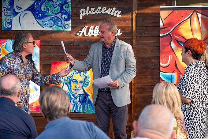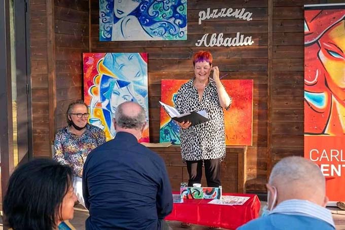 MARCHE – Dopo le promozioni di Matelica, Dusseldorf, Tollo, Torrevecchia e Forte dei Marmi, Carlo Gentili presenta il suo libro d’arte “Diarmonia, la compresenza degli opposti” all’Abbadia di Fiastra, nel maceratese. La pubblicazione da collezione, firmata e a tiratura numerata, narra lo spaccato artistico di Gentili evidenziandone sia le caratteristiche compositive che la poetica narrativa. Soddisfazione è stata espressa dal curatore Mario Monachesi, il quale ha realizzato il manifesto dell’evento componendo per l’occasione una “poesia visiva” dedicata al colore ed all’arte. Ad ogni presentazione del libro l’artista presenta un dipinto al pubblico. Nella recente presentazione all’Abbadia di Fiasta, invece, ne ha presentati due: “Beethoveen” e “Volti azzurri”. Il primo per la potenza del colore, per la asimmetria compositiva e per i grandi spazi di colore presenti nel dipinto che devono accogliere i nostri silenzi, le nostre riflessioni; “Volti azzurri”, invece, trasporta un messaggio più intellettuale, maggiormente silenzioso: invita a riflessioni interiori per migliorare noi stessi, la realtà che ci circonda nel rsipetoo della natura e del mondo animale. Evento a cura di Mario Monachesi, scenografia di Gabriella Cesca, foto di Lorena Cerqueti. Conduttrice e voce recitante Gigliola Batocchi, testo di David Monachesi. Prefazione di Antonio Bortone, critica di Massimo Pasqualone, poesia disarmonista di Bianca Maria Romano, testimonianze di Carlo Damiani.