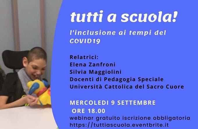 SAN BENEDETTO DEL TRONTO –  La Onlus Michelepertutti è già pronta per affiancare mamme e papà per il rientro a scuola, per comprendere meglio le dinamiche e le evoluzioni dell’anno che sta per iniziare, soprattutto per i ragazzi più fragili che sono sempre al centro delle attenzioni della Onlus. Anche durante la pandemia i webinar sono stati un importante momento formativo e di supporto attraverso competenze e qualità dei professionisti che hanno dato il loro contributo, ciascuno per le aree di interesse, affinché tutti fossero seguiti online, accorciando le distanze imposte dal Covid. «Nella complessa riorganizzazione della scuola, l’inclusione dei bambini con disabilità è trattata come un tema marginale. Al contrario è un tema complesso e va trattato e approfondito con l’aiuto di esperti in materia. É proprio questo l’obiettivo del webinar» conclude la presidente di Michelepertutti, Cristiana Carniel. Alle ore 18 di mercoledì 9 settembre, torna l’appuntamento con i webinar gratuiti con iscrizione obbligatoria https://tuttiascuola.eventitribe.it voluti da Michelepertutti cui prenderanno parte professionisti del settore. Relatrici di questo incontro saranno: Elena Zanfroni e Silvia Maggiolini, docenti di Cedisma, il Centro Studi e Ricerche sulla Disabilità e la