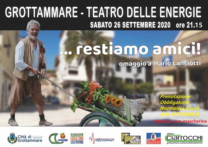 GROTTAMMARE – Sketch teatrali, poesia, musica ed emozionanti omaggi video social: uno show inedito e variegato, intenso e ricco di colpi di scena, sarà proposto sabato 26 settembre, alle ore 21.15, al Teatro delle Energie di Grottammare. Collante della manifestazione il primo anniversario della prematura scomparsa dell’attore dialettale Mario Lanciotti, figura indelebile della comunità della Perla dell’Adriatico. Svelato il cast di questa prima edizione composto da ben tre gruppi teatrali del nostro territorio: “I Nosocomici” diretti dal regista Franco Di Pancrazio, “I fuori di testo” ed infine “La Ribalta Picena”, rappresentata dall’attore Francesco Casagrande. Lo spazio poetico verrà affidato al grottammarese Vincenzo Massacci, accompagnato per l’occasione dal musicista fisarmonicista Emidio Lucidi. Dunque tanti protagonisti in scena, che hanno voluto essere presenti al primo memorial. Molta attiva l’associazione “Lido degli Aranci” che esprime, nelle parole di Alessandro Ciarrocchi e Valter Assenti, un pensiero in merito: «Nostro compito sarà quello di ripercorrere, con la giusta umiltà, la brillante carriera artistica di Mario Lanciotti, attraverso l’arte dell’amicizia, in uno spettacolo ad ingresso gratuito. Ringraziamo l’ Amministrazione comunale e tutti i performers che hanno aderito al nostro appello». La serata, con inizio alle ore 21.15, verrà condotta da Giuseppe Cameli, affiancato dalla simpatica presenza di Romina Narcisi. Per assistere all’ evento in teatro è obbligatorio indossare la mascherina ed attivarsi per la prenotazione, come previsto dalla normativa Covid. Infoline presso la merceria “Il Cigno” di Grottammare: 347/5406630.