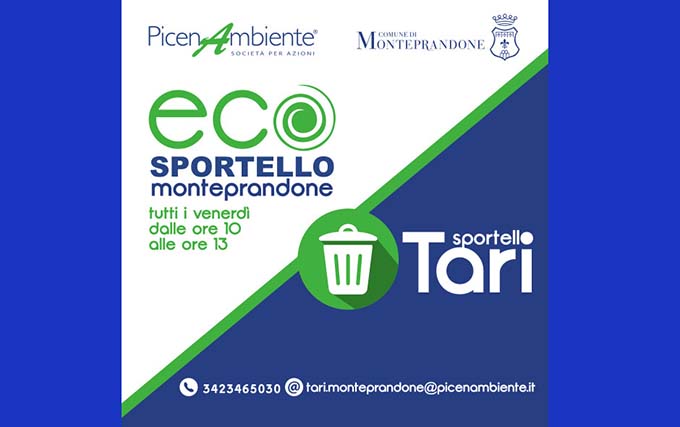 MONTEPRANDONE – In accordo con PicenAmbiente, si comunicano le modalità di fruizione dei due servizi erogati nel Comune di Monteprandone. L’Ecosportello è aperto tutti i venerdì dalle 10 alle 13, escluso festivi, presso la Delegazione comunale di via delle Magnolie n. 1 a Centobuchi. I cittadini possono rivolgersi al personale di PicenAmbiente per ricevere sacchetti dell’umido, sostituire mastelli rotti, avere informazioni sul servizio. L’accesso è consentito su appuntamento contattando il numero 0735/71091 dal lunedì al giovedì dalle 10 alle 13. Per pratiche amministrative e chiarimenti sui pagamenti della Tari si può contattare lo sportello Tari esclusivamente via email tari.monteprandone@picenambiente.it o telefonicamente al numero 342/3465030.