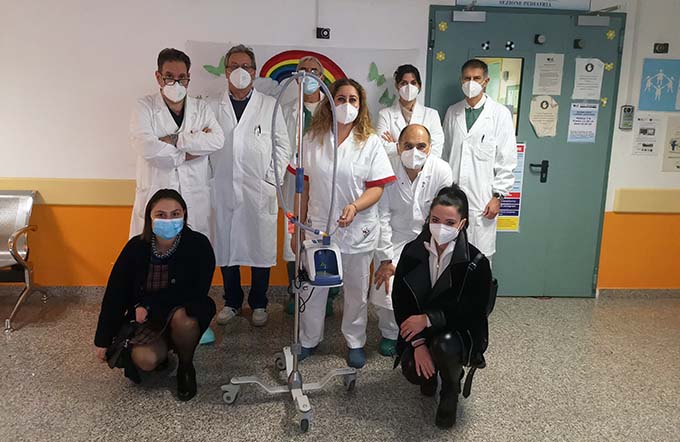 ASCOLI PICENO – Altra importante iniziativa per il reparto di Pediatria dell’Ospedale Mazzoni di Ascoli Piceno promossa dall’associazione di beneficenza “Nessun Dorma” con sede a Pagliare del Tronto in provincia di Ascoli Piceno. Nata nel 2009, l’associazione organizza iniziative e manifestazioni incentrate sul divertimento dei più piccoli, con il fine di promuovere progetti che aiutino i bambini malati nelle Marche. L’Area Vasta 5 ringrazia la suddetta associazione che ha donato un umidificatore attivo con generatore di flusso integrato (Sistema Airvo2). Trattasi di un dispositivo medico che permette di eseguire una ventilazione non invasiva erogando ossigeno a flusso elevato, caldo ed umidificato. I vantaggi rispetto ai sistemi di ossigenoterapia convenzionali sono numerosi: l’ossigenoterapia è più confortevole, consente al bimbo di mangiare e di dormire più tranquillamente, consente inoltre di erogare un’ampia gamma di flussi e concentrazioni di ossigeno, permette una migliore tolleranza aumentando l’efficienza respiratoria, migliora inoltre la rimozione delle secrezioni riducendo il rischio di infezioni. L’utilizzo di tale sistema è rivolto ai pazienti con difficoltà respiratorie moderata-severa siano essi neonati, con iniziale d stress respiratorio postnatale, che lattanti affetti da bronchiolite acuta, principale causa di ospedalizzazione sotto l’anno di vita.