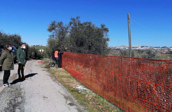 MONTEPRANDONE – Con l’installazione del cantiere, sono partiti questa mattina lunedì 15 febbraio, i lavori di messa in sicurezza di un tratto di via Montetinello a Monteprandone. L’intervento consiste nel ripristino della viabilità mediante la realizzazione di opere di consolidamento della sede stradale con rifacimento della sottofondazione e, successivamente, della pavimentazione. I lavori, realizzati dalla ditta NO.FRA. srl di Monteprandone, sono finanziati con fondi regionali per l’emergenza neve 2017. Lo scorso ottobre, infatti, il Comune di Monteprandone aveva ottenuto 295.000 euro, di cui 80.000 per via Montetinello e 215.000 euro per via Spiagge. «L’intervento in via Montetinello – dichiarano il sindaco Sergio Loggi e l’assessore viabilità Fernando Gabrielli che stamane hanno effettuato un sopralluogo sul cantiere – è il primo di una serie di lavori programmati attraverso i quali metteremo in sicurezza strade rurali su versanti collinari danneggiate dagli agenti atmosferici. Nelle prossime settimane, infatti, partiranno anche i lavori in via Spiagge che rientrano sempre nel fondo regionale emergenza neve, e in via Monterone, su cui investiremo 640.000 euro provenienti dal Ministero dell’Interno».