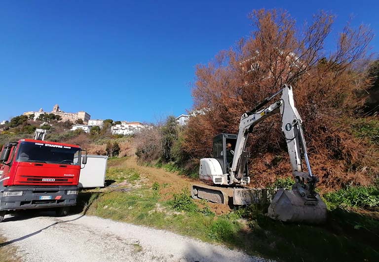 MONTEPRANDONE – Sono partiti i lavori per la messa in sicurezza e ripristino della viabilità per dissesto idrogeologico di un tratto di strada di via Monterone a Monteprandone. Questa mattina, mercoledì 24 febbraio, la ditta G.E.V. New Evolution srl che si è aggiudicata la gara, ha avviato gli interventi propedeutici di pulizia della scarpata e installato il cantiere. «Finalmente anche via Monterone sarà sistemata. Alcuni cittadini attendevano da tempo questo importante intervento di messa in sicurezza di una delle più importanti arterie che collegano il Centro storico alla zona del Santuario di San Giacomo della Marca – dichiara l’assessore alla viabilità Fernando Gabrielli, presente sul cantiere insieme al sindaco Sergio Loggi – con questi lavori andremo a rispristinare la viabilità, rendendola più sicura, ma anche ad effettuare un’operazione di mitigazione del rischio idrogeologico». Ricordiamo che il Comune di Monteprandone aveva presentato un progetto e ottenuto un finanziamento di 640.000 euro rispondendo a un bando del Ministero dell’Interno, finanziamento che copre l’intento progetto. Su 8405 candidature pervenute al Ministero dell’Interno da parte degli Enti locali, il progetto del Comune di Monteprandone era rientrato tra i 310 progetti finanziati, unico Comune per la Provincia di Ascoli Piceno.