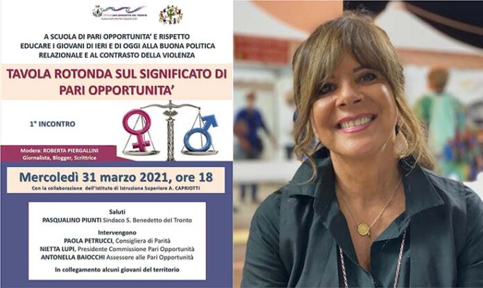 Mercoledì 31 marzo 2021, ci sarà una TAVOLA ROTONDA SUL SIGNIFICATO DI PARI OPPORTUNITA’. Intervengono: Paola Petrucci, Consigliera di Parità; Nietta Lupi, Presidente Commissione Pari Opportunità.