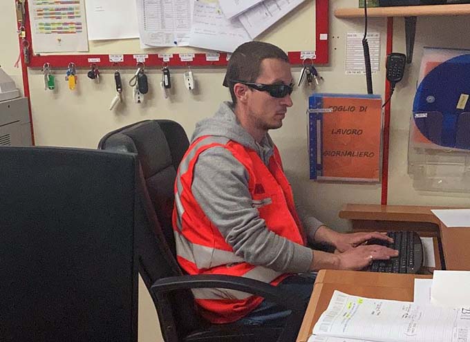 Alla domanda relativa le mansioni che svolge, Mirco risponde: «Oltre al 118, la Croce Rossa svolge attività di assistenza alla popolazione. Io faccio parte di una squadra che si occupa della consegna dei beni di prima necessità alle famiglie, che accompagna pazienti a fare terapie e mi occupo della gestione dati del magazzino dei beni alimentari: in pratica carico sul computer tutti i dati relativi alle consegne e alle attività che gli operatori della Croce Rossa svolgono ogni giorno. Mi trovo benissimo e mi piace molto, è un compito che avevo già svolto prima di perdere la vista. Spero non si esaurisca con la fine del tirocinio».