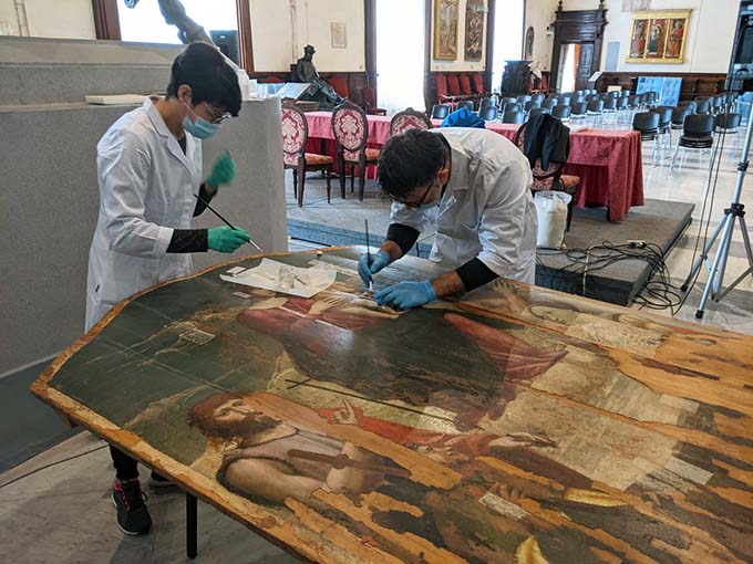 Giuseppe di Girolami (Art&Co) e Michele Aureli (Adip) hanno infine illustrato le operazioni che verranno eseguite sulle opere, al fine di studiare in profondità e con metodologie e analisi non invasive ogni aspetto circa l’idea iniziale degli artisti, le sovrapposizioni che si sono stratificate nei secoli, i materiali utilizzati, le tecniche pittoriche adottate nonché eventuali sorprese che a occhio nudo non sono visibili; interessanti saranno le modalità di ripristino dello stato di salute delle tavole e come e in che modo verranno trattate le ampie lacune che la tavola di Cola attualmente presenta.