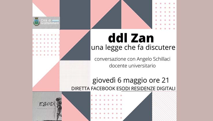 GROTTAMMARE – Ddl Zan, una legge che fa discutere: le pagine Facebook “Esodi residenze digitali” e “Città di Grottammare” organizzano un incontro volto a capirne meglio i contenuti insieme al docente universitario prof. Angelo Schillaci, che ha collaborato alla stesura del testo. L’appuntamento in diretta streaming è fissato a giovedì 6 maggio alle ore 21. «La discussione – anticipa l’organizzatore Lucilio Santoni – verterà sul bisogno o meno di tale legge. In che modo devono essere garantiti tutti i cittadini? Esiste o no, oggi, una legge che tutela chi viene aggredito? Ogni essere umano ha diritto di esser libero di manifestare le proprie idee e le proprie tendenze senza danneggiare gli altri? A queste domande tenteremo di cercare una risposta». All’iniziativa prenderà parte anche il filosofo Alessandro Pertosa.