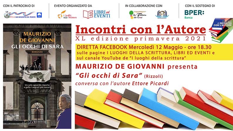 SAN BENEDETTO DEL TRONTO – Mercoledì 12 maggio lo scrittore Maurizio De Giovanni sarà ospite dell’associazione culturale “I Luoghi della Scrittura” nell’ambito della rassegna “Incontri con l’Autore: XL ed. primavera 2021”. Conversa con l’autore Ettore Picardi. L’evento sarà in diretta alle ore 18.30 sulle pagine Facebook dell’associazione e sul canale Youtube de “I luoghi della scrittura”.