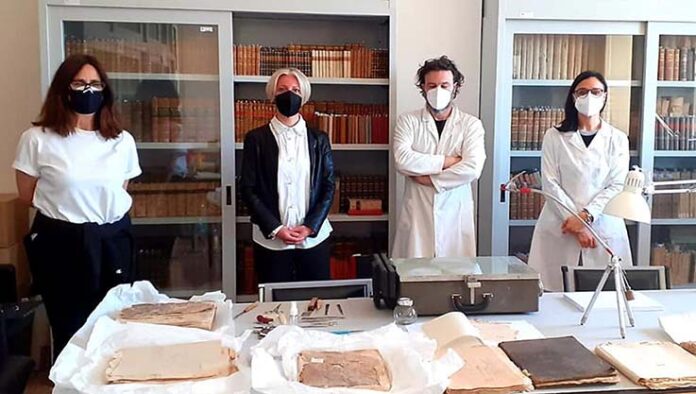 RECANATI – Il Comune di Recanati dà il via al progetto di restauro dei preziosi testi del Liber Iustitiae del XIV secolo, conservati nell’Archivio Storico di Recanati. Una delicata operazione di restauro che verrà effettuata all’interno dei locali della Biblioteca comunale M.A. Bonacci Brunamonti e che per la prima volta potrà essere seguita direttamente dal pubblico interessato, per tutta la settimana, su prenotazione. Dopo il nulla osta della Soprintendenza delle Marche, sono cominciati ieri i lavori di restauro delle circa 3000 carte del Liber Iustitiae, la preziosa raccolta di libri giudiziari con le rendicontazioni dei processi e delle pene del 1300, antiche scritture dei notai del Comune di Recanati, in latino, con abbreviature e tecniche tipiche dell’epoca. Le delicate operazioni di restauro sono state affidate alle sapienti mani di Giovanni Pagani direttore della società no profit Recanati e Restauro e della sua collaboratrice Valeria Di Capizzi, associazione che ha sede all’interno della biblioteca seicentesca “Clemente Benedettucci” di Recanati e che ne segue da anni il recupero degli antichi testi presenti.
