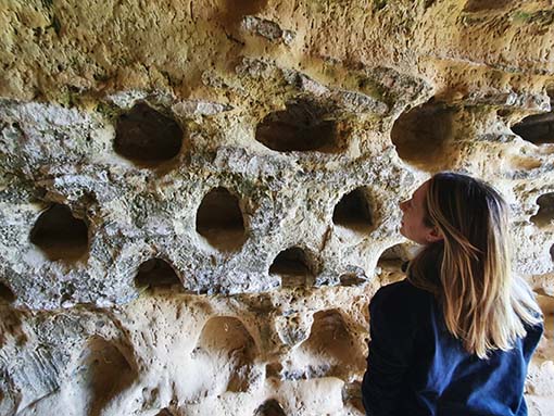 La difficile sfida sarà conservare i Grotti, peculiarità geologica e culturale del territorio di Montefiore e della vicina Massignano. Purtroppo per loro natura le cavità in arenaria tendono a sfaldarsi, ancora di più se presentano buchi alle pareti. Ogni gesto umano può arrecare danno a un ambiente così delicato. Figuriamoci incidere stoltamente il proprio nome, come tanti hanno fatto. Quindi visitiamole, ma con grande attenzione e massimo rispetto per la loro sacralità.