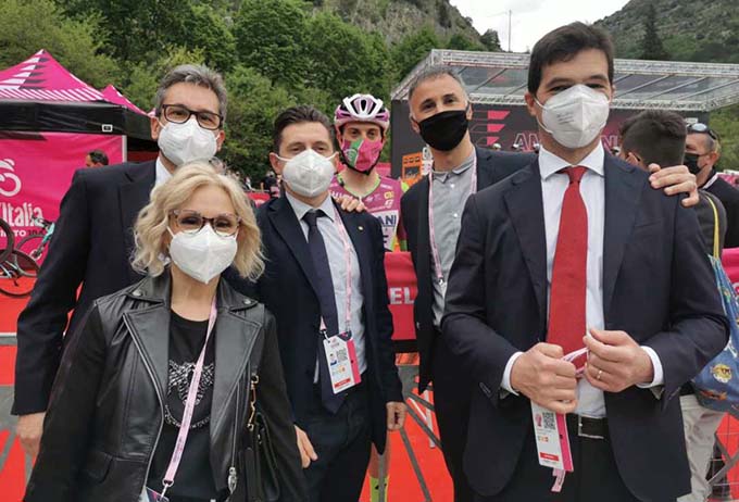 «La tappa di oggi – ha ricordato Castelli – non solo ha fatto riaccendere i riflettori dopo il grande dramma vissuto nel sisma del 2016, ma ha anche solennizzato il cinquantesimo della scoperta delle Grotte di Frasassi. Attraverso il turismo e il ciclismo è possibile creare un asset assolutamente invidiabile e con pochi paragoni in Italia». «Siamo pronti alla ripartenza e alla rinascita – ha rimarcato Giorgia Latini – e oggi attraverso una manifestazione sportiva abbiamo sottolineato il nostro grandissimo patrimonio paesaggistico e culturale. Lo sport è uno strumento che fa vivere le bellezze del nostro territorio come ha rimarcato Beppe Conti nel suo libro di e mi fa piacere vedere a questa presentazione i ciclisti che hanno fatto la storia di questo magnifico sport».