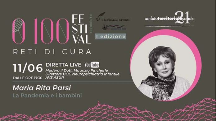 SAN BENEDETTO DEL TRONTO – Proseguono le iniziative previste dalla prima edizione del “Festival 0/100 Reti di Cura”, importante occasione formativa organizzata dall’Ambito Territoriale Sociale n. 21 a favore dell’intera comunità educante inclusiva dei dodici comuni di Acquaviva Picena, Carassai, Cossignano, Cupra Marittima, Grottammare, Massignano, Monsampolo del Tronto, Montalto delle Marche, Montefiore dell’Aso, Monteprandone, Ripatransone e San Benedetto del Tronto. Il secondo appuntamento del “Festival 0/100” è programmato per venerdì 11 giugno alle ore 17.30 con la psicologa, psicoterapeuta, docente, saggista e scrittrice Maria Rita Parsi che tratterà il tema “La Pandemia e i Bambini”. Diretta live al seguente link: https://youtu.be/qqcO3TFHbd4 É possibile ricevere l’attestato di partecipazione all’evento iscrivendosi su Eventbrite al seguente link: www.eventbrite.it/e/157211589095. Il 23 giugno 2021 ci saranno Emiliano Toso e Daniel Lumera.