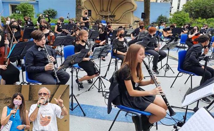 SAN BENEDETTO DEL TRONTO – Dalla Scala di Milano all’orchestra dei giovani musicisti della Scuola Media Curzi di San Benedetto. Giobbe Covatta è intervenuto a sorpresa come solista al Gran Concerto dei ragazzi dell’indirizzo musicale dell’istituto rivierasco, in scena alla Palazzina Azzurra. Una vera e propria orchestra composta da ottanta alunni con violini, chitarre, pianoforti e clarinetti. Reduce dei successi del suo spettacolo accompagnato dai musicisti del tempio della lirica meneghino, il popolare attore comico, scrittore e commediografo non ha voluto mancare all’appuntamento con la kermesse, che per San Benedetto ha rappresentato un piccolo ma significativo segnale di ripartenza anche dell’attività artistica e musicale. Lo stesso Covatta, che con i ragazzi ha cantato “Tu vuò fa’ l’americano”, ha dichiarato di aver fatto di tutto per essere presente, ricordando quanto il mondo dello spettacolo abbia sofferto con le chiusure per le misure anti-Covid. Oltre al brano di Renato Carosone, gli alunni musicisti, guidati dai loro insegnanti Serena Zeppilli, Marco Travaglia, Elisetta Carosi, Maria Teresa Basti e Luca Proietto, hanno eseguito musiche di Morricone, l’Intermezzo della Cavalleria Rusticana di Mascagni e l’Inno d’Italia. La serata, andata in onda in diretta e in streaming su Vera Tv, è stata presentata dalla giornalista Gloria Caioni con la partecipazione della Dirigente dell’Isc Centro Laura D’Ignazi, del sindaco Pasqualino Piunti e degli assessori comunali Annalisa Ruggieri e Emanuela Carboni, oltre che dell’attore Vincenzo Di Bonaventura.