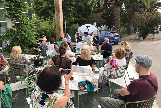 SAN BENEDETTO DEL TRONTO – Satira, sketch e tante risate hanno caratterizzato il secondo atteso appuntamento del “salotto culturale” di Hārena d’Autore, andato in scena  negli spazi esterni del nuovo centro interculturale di San Benedetto del Tronto e curato da Mimmo Minuto con il patrocinio della Regione Marche e del Comune di San Benedetto del Tronto. Ospite di Hārena stavolta è stato il famoso duo Le Coliche, formato da Fabrizio e Claudio Colica, che per l’occasione hanno parlato della loro esperienza di comici e del loro primo libro “Come il mal di pancia, la storia vera di due fratelli per sbaglio”. Le Coliche sono state introdotte da Claudio Siepi di Radio Incredibile. Chiaramente a fare gli onori di casa non poteva che essere la titolare Patrizia Ferrara.