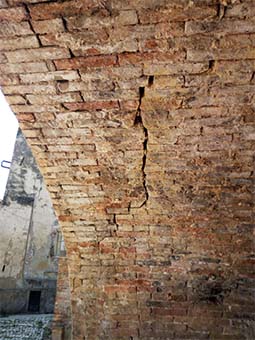 GROTTAMMARE – Destano preoccupazione alcune crepe accertate nei muri del lavatoio di Santa Lucia: disposto il divieto di accesso all’area dove sorge la chiesa voluta dalla sorella di Papa Sisto V, Camilla Peretti. L’ordinanza è stata firmata dal sindaco Enrico Piergallini, dopo i rilievi effettuati dai tecnici comunali nella struttura sottostante l’ingresso dell’edificio cinquecentesco, già chiuso al pubblico per i danneggiamenti del terremoto del 2017. «Le tre volte a botte, sottostanti la via di acceso alla Chiesa di Santa Lucia e prospicienti la piazzetta si presentano in uno stato manutentivo non buono ed in particolare a destare perplessità circa la sicurezza di tali strutture è la volta del lato nord-est – si legge nella relazione dell’arch. Morena Corradetti del servizio Controllo attività edilizia, in sopralluogo insieme al geom. Nazzareno Cecchini – Le tre volte a botte sono tutte e coinvolte da fenomeni di fessurazione dei giunti in malta cementizia tra i mattoni e tale fenomeno rientra in un quadro fessurativo pressoché normale, tenuto conto delle naturali dinamiche di usura. Diverse sono le fessurazioni rilevate nella volta posta a nord-est, che non interessano esclusivamente i giunti tra i mattoni, bensì risultano lesionate a taglio e a scorrimento del paramento murario. Inoltre, si evidenzia il distaccamento di alcuni mattoni lungo l’arco d’imposta della volta in esame».