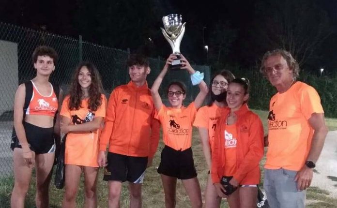 SAN BENEDETTO DEL TRONTO – Ennesimo week end denso di soddisfazioni per la Collection Atletica Sambenedettese. Sabato 19 giugno, presso il Campo Scuola Italo Conti di Ancona, la compagine Orange si è aggiudicato il Trofeo Memorial Franco Consoli, risultando la società che ha ottenuto il maggiore punteggio sommando le prestazioni ottenute nella categoria Ragazzi/e e Cadetti/e nella disciplina del Salto in Alto. La vittoria è stata conseguita grazie ad una prova corale che ha visto anche alcune performances importanti quali ad esempio la vittoria di Elena Marchionni nella categoria Ragazze con la misura di 1,40, gara che ha visto piazzarsi in quarta posizione Giorgia Capecci con 1,25 con il suo nuovo personal best e sesta Giorgia Mensietti con 1,20 che eguaglia il suo record personale. Nella categoria Cadette terzo posto per Beatrice Brutti con la misura di 1,35 e nona Sofia Filioni che salta 120, entrambe al proprio personal best.