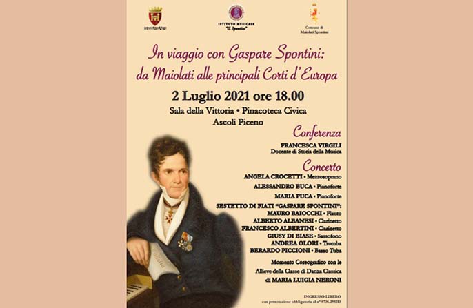 ASCOLI PICENO –  Interessante pomeriggio musicale, venerdì 2 luglio alle ore 18, presso la Sala della Vittoria della Pinacoteca Civica di Ascoli Piceno, con la conferenza – concerto: “In viaggio con Gaspare Spontini: da Maiolati alle principali Corti d’Europa” realizzata dall’ Istituto Musicale Gaspare Spontini e dal Comune di Ascoli Piceno, alla presenza di un’importante delegazione del Comune di Maiolati Spontini formata  dal sindaco Tiziano Consoli, dal vicesindaco Mario Pastori e dall’assessore alla cultura Tiziana Tobaldi. Tale omaggio segnerà l’avvio delle celebrazioni nel 2024 per il 250° Anniversario della nascita del musicista al quale è intitolato l’Istituto musicale. Saranno ripercorse le tappe più significative del maestro maiolatese, compositore e direttore d’orchestra che godette di grande fama ai suoi tempi, anche se più conosciuto in Francia ed in Germania che non in Italia. Nella sua vasta produzione, si ricorda in particolare, La Vestale, nel 1807, suo capolavoro, che rappresenta appieno lo spirito dell’era napoleonica. Considerato da molti il precursore del grand-opéra francese, i suoi lavori aprirono la strada al melodramma italiano ed europeo. Fra i suoi più importanti estimatori: Berlioz, Hoffmann ed il grande Wagner, solo per citarne alcuni. La conferenza sarà tenuta da Francesca Virgili, docente di Storia della Musica dell’Istituto ascolano e, seguendo il viaggio di Spontini dalla sua terra natia alle principali Corti d’Europa, saranno proposte alcune tra le pagine più significative della sua vasta produzione musicale.  Gli esecutori, tutti docenti dello Spontini, che si alterneranno sul palco saranno il mezzosoprano Angela Crocetti, i pianisti Maria Puca e Alessandro Buca, il sestetto di fiati Gaspare Spontini formato da: Mauro Baiocchi (Flauto), Alberto Albanesi e Francesco Albertini (Clarinetto), Giusy Di Biase (Sassofono), Andrea Olori (Tromba) e Berardo Piccioni (Basso Tuba), il tutto impreziosito da un momento coreografico con le allieve della classe di Danza di Maria Luigi Neroni. Per partecipare all’evento sarà necessaria la prenotazione al numero 0736/298213.