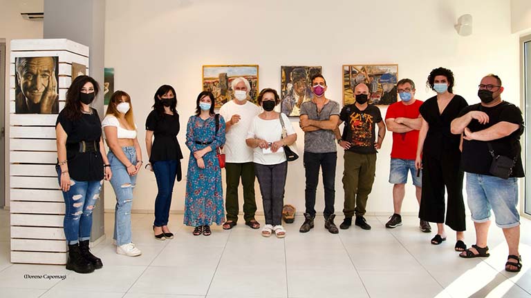 Ecco gli artisti: Stefano Brandetti con la sua pittura racconta la vita e il mistero dell’uomo, mentre con i suoi manufatti scultorei esalta il rito della morte. Racconti poetici ed inquieti. William Kaine esprime con la sua pittura l’eleganza e il fascino della donna. Sabrina Spurio raffinata pittrice con la presentazione di opere di notevole importanza. Morena Di Felice dona il suo interiore fantasioso con un intelligente racconto dei pensieri quotidiani. Chiara Piermanni illude ed evoca il suo tempo in modo semplice e surreale con figure attente e tormentate. Onelia Capomagi ha esposto illustrazioni appartenenti alla sua personale “La Pantafa”, che sono il risultato di un diario scritto per immagini durante il confinamento che tutti abbiamo vissuto lo scorso marzo-aprile 2020. Sono una critica alla gestione pandemica, un invito a non avere paura. Anselmo Brutti dona il gesto allo sguardo dello spettatore, un gesto con costruzione astratta ferma e decisa. Alice Romano raccoglie il desiderio evocativo della materia con materiali simbolici forse creati per il suo essere mentale. Gloria Sosi che riesce con una pittura gestuale ha identificare la figura umana negli sguardi inquieti, ribelli.
