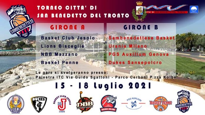 SAN BENEDETTO DEL TRONTO – La società sportiva Sambacanestro annuncia un evento di grande rilievo organizzato con il patrocinio del Comune di San Benedetto del Tronto: il primo Torneo di Basket categoria U14 Città di San Benedetto del Tronto. Otto le squadre partecipanti provenienti da tutta Italia: Milano, Genova, Jesolo, Penne, Bisceglie, Mazzano e San Sepolcro, oltre ovviamente la squadra di casa. La compagine Sambenedettese, guidata dal coach Marco Borgognoni, è reduce da un buon campionato di categoria terminato al secondo posto e farà di tutto per difendere al meglio i colori rossoblù anche in questo difficile impegno. I Teams si sfideranno a partire da giovedì 15 luglio in un contesto di amicizia e grande sportività. Le gare avranno luogo prevalentemente presso il Parco Cerboni di Piazza Kolbe sullo splendido play ground realizzato e gestito dalla Sambenedettese Basket con la collaborazione del comitato di quartiere che gestisce il parco. Alcune gare, per agevolare il folto tabellone, si svolgeranno invece presso la palestra dell’Itc “A.Capriotti” (via Guido Sgattoni). In caso di pioggia tutte le gare avranno luogo presso l’Isituto d’Istruzione Superiore. Ottima l’organizzazione dall’accoglienza degli oltre 120 atleti e genitori a seguito, la logistica, la gestione tecnica e sportiva. Un evento che porta visibilità alla città e focalizza su San Benedetto l’attenzione degli appassionati di questo meraviglioso sport.